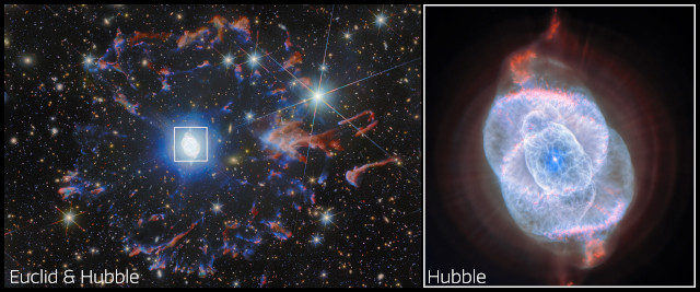 La nebulosa planetaria Occhio di Gatto studiata dai telescopi spaziali Euclid e Hubble