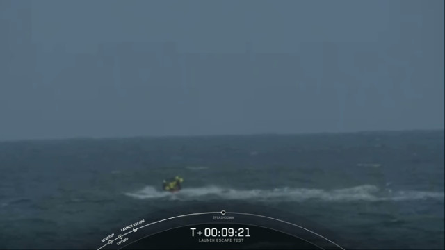 Tutto sembra essere andato bene perciò la navicella spaziale Crew Dragon si è separata in tempo quando il primo stadio del razzo Falcon 9 è stato spinto in una situazione anomala che ne ha causato la distruzione volontaria. Dopo pochi minuti la Crew Dragon è ammarata al largo delle coste di Cape Canaveral.