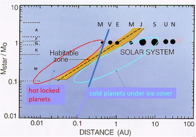 Un articolo pubblicato sulla rivista “The Astrophysical Journal” riporta i risultati di uno studio sulla zona abitabile che va oltre quella chiamata conservativa perché basata su premesse rigide. L’astrofisico Amri Wandel dell’Università ebraica di Gerusalemme si è concentrato sull’esame delle condizioni esistenti in sistemi di stelle di piccola massa, le nane arancioni, di classe K, e le nane rosse, di classe M. Lo studio ha considerato in particolare i pianeti in rotazione sincrona con le loro stelle.
